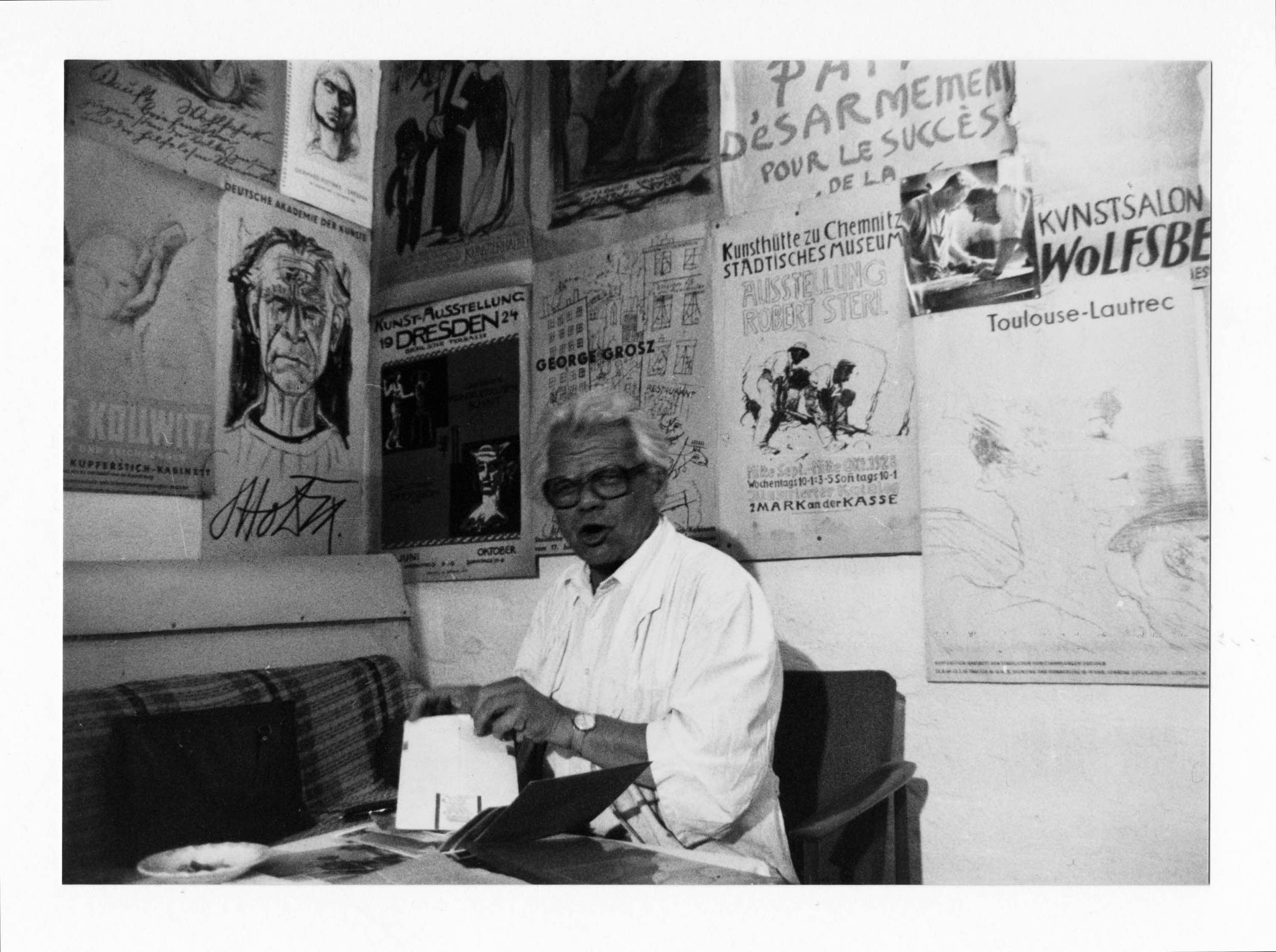 Strength, tact, artistic sensitivity and empathy for the artist's intention are unabadable prerequisites for a top printer. Ehrhardt proudly shows the signed prints of his Dix Lithos gifts to the printer. One bears the dedication "To the best printer in Germany".