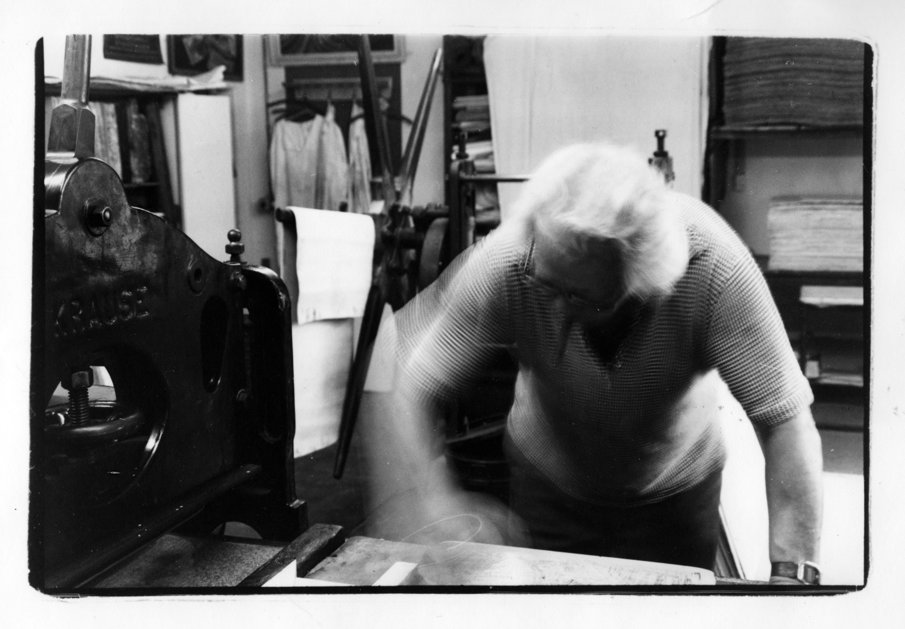 Strength, tact, artistic sensitivity and empathy for the artist's intention are unabadable prerequisites for a top printer. Ehrhardt proudly shows the signed prints of his Dix Lithos gifts to the printer. One bears the dedication "To the best printer in Germany".